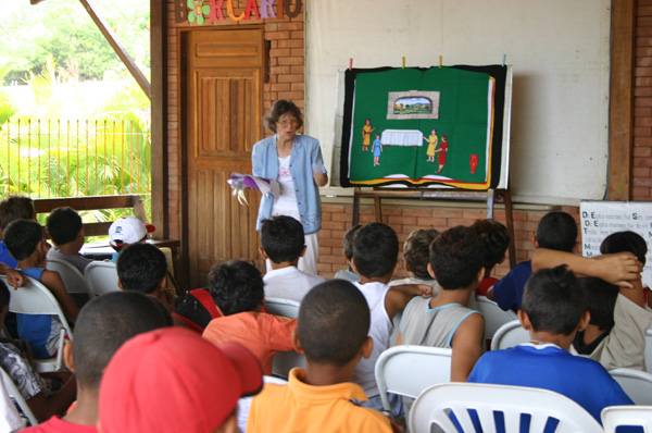 1974 - Março. Seminaristas, moças, realizaram EBF para crianças e fizeram