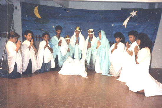 aulas de mímica, histórias bíblicas, jogos, pipoca e um filme. Todos gostaram